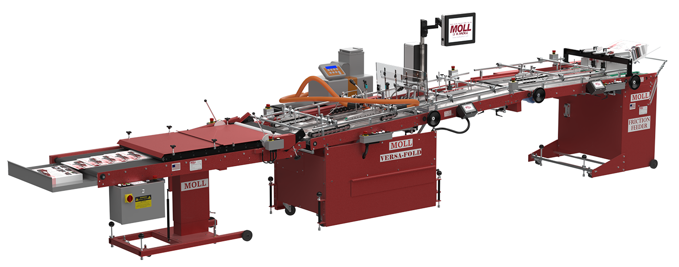 Through Moll’s module design, you move units in and out, allowing for quicker and easier setups. For materials requiring the extra glue penetration time and positive control after folding, you will appreciate the Moll Pressure Stacker. With adjustable height intake alignment, top and bottom full width motorized blanket belts, and adjustable pressure control, Moll’s Pressure Stacker will provide the results you expect.